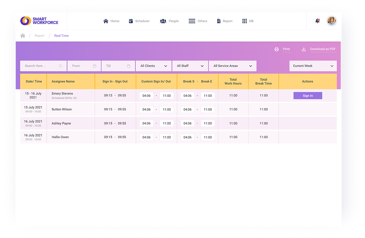 Managing employee time and attendance can be a tedious and time-consuming task. Smart Workforce is a faster and user-friendly time and attendance management system that automates the process of tracking time and attendance and allows managers to make smart decisions for performance optimization.